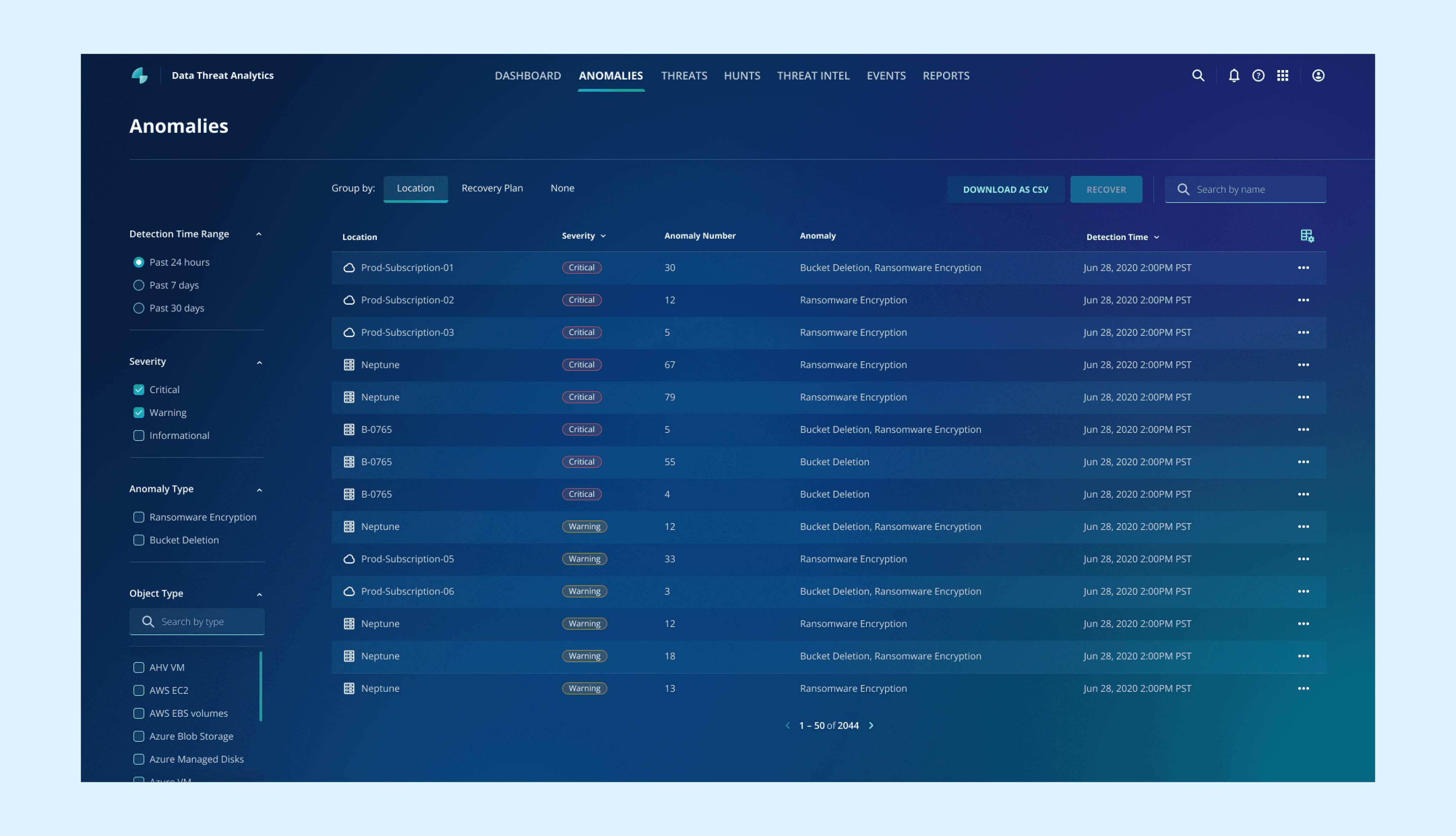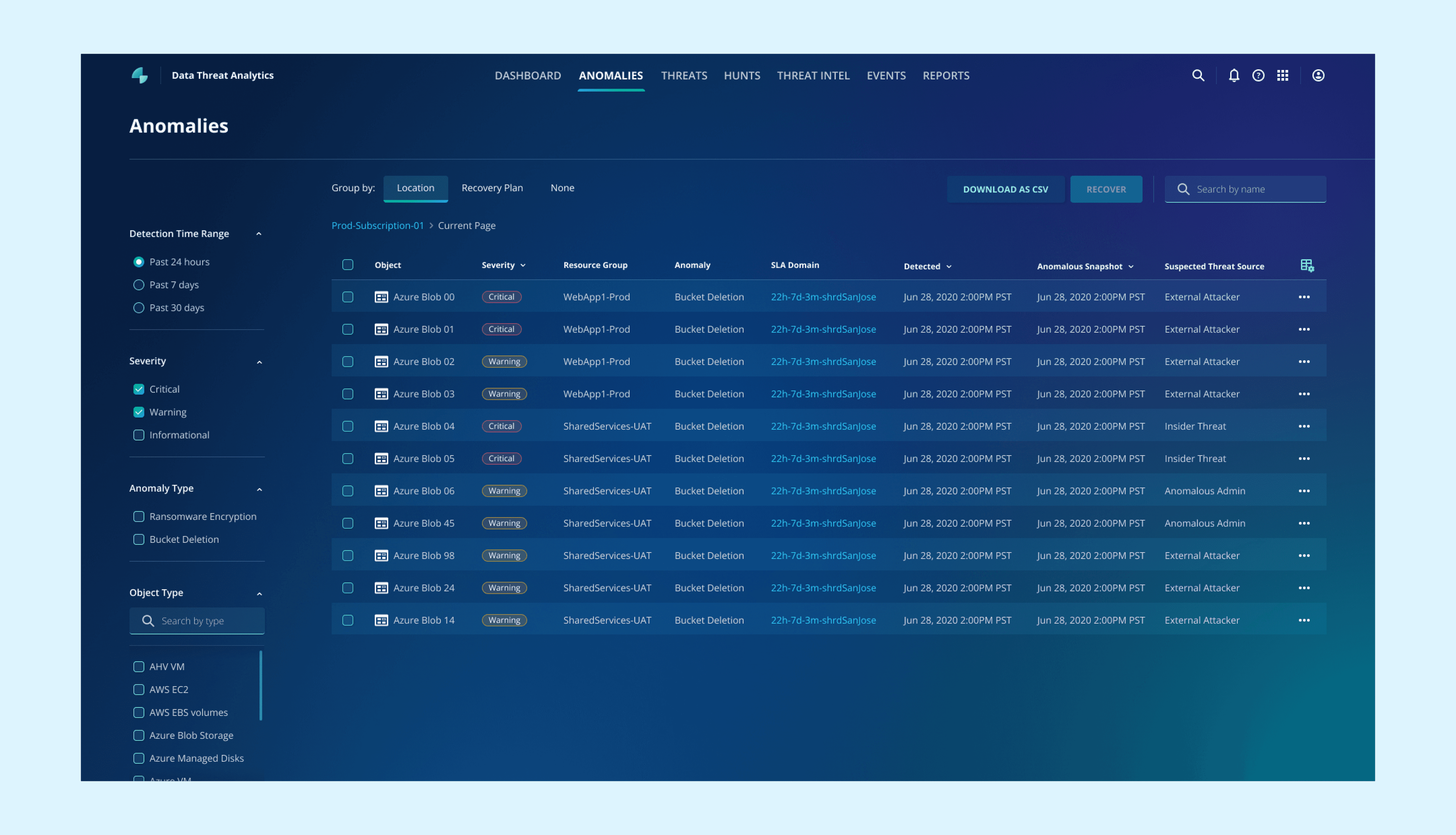 After: Group by location to reduce the overall anomaly numbers and provide investigation directions