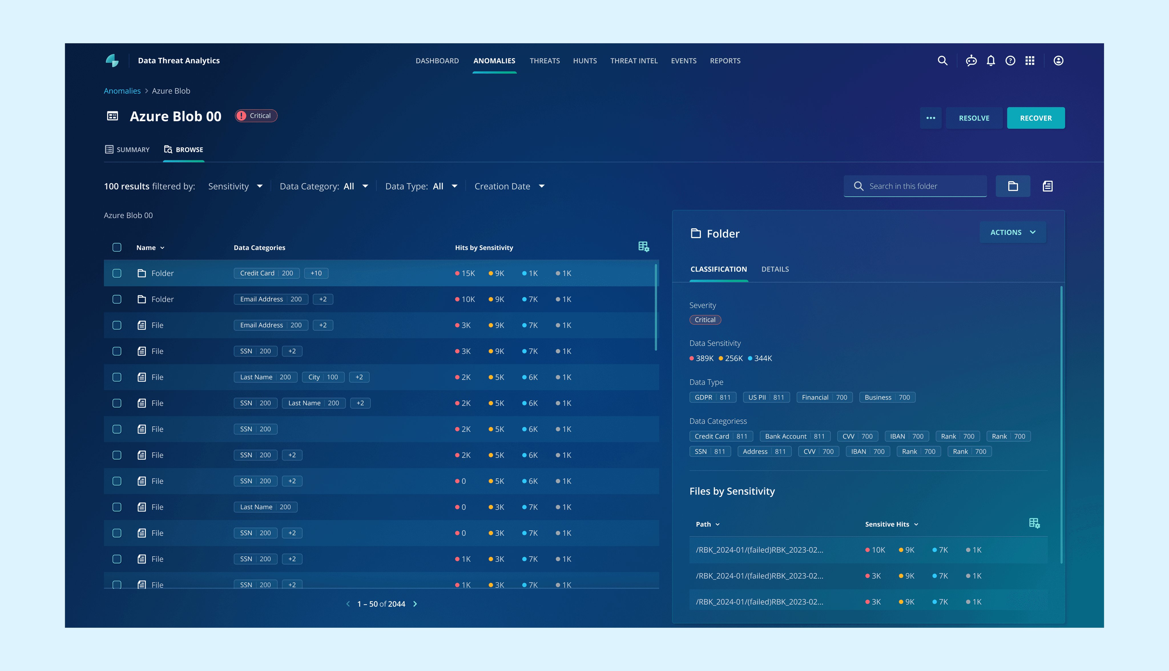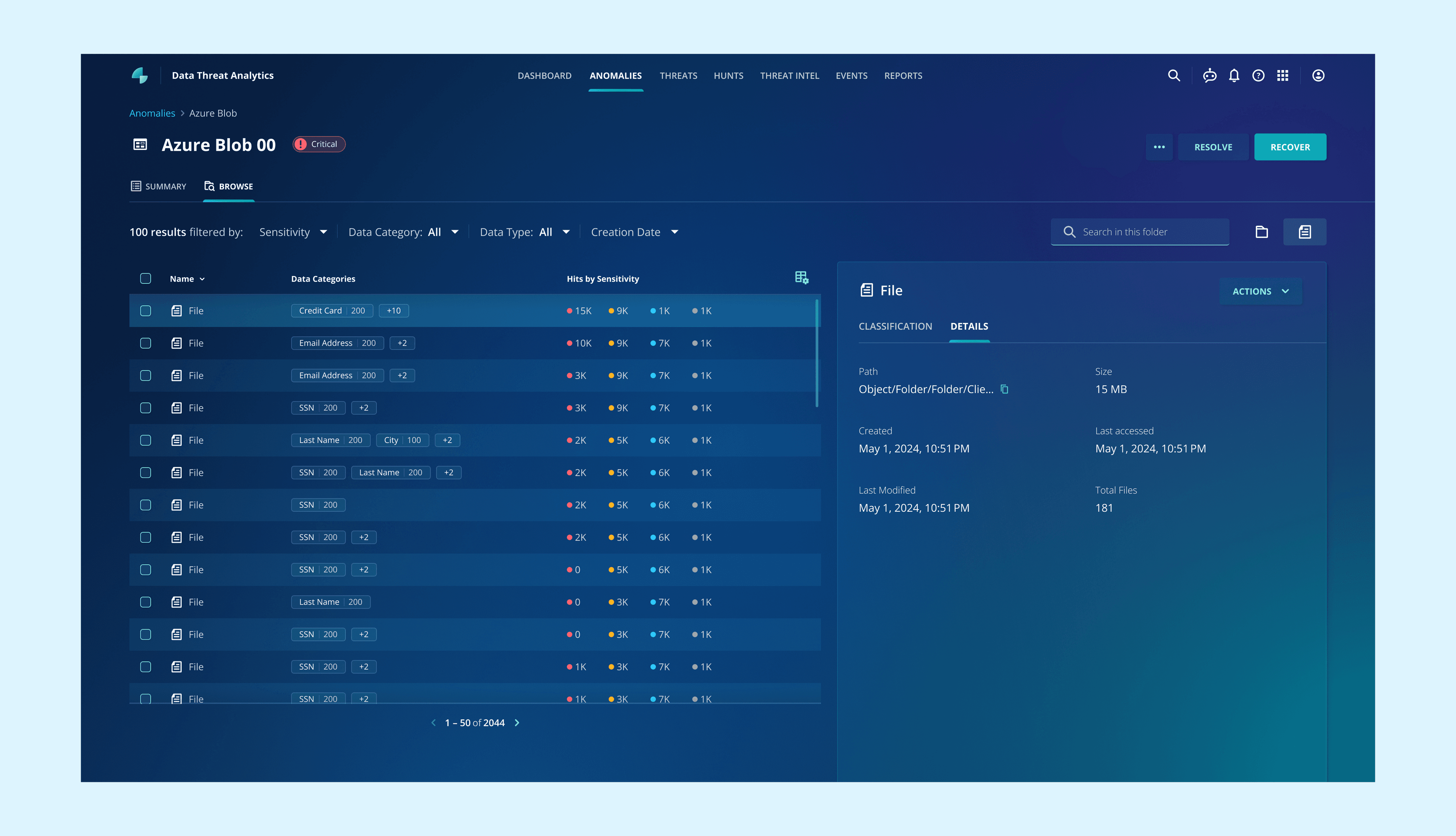 Add a "Data Sensitivity" section indicates file sensitivity to help users assess an attack's severity