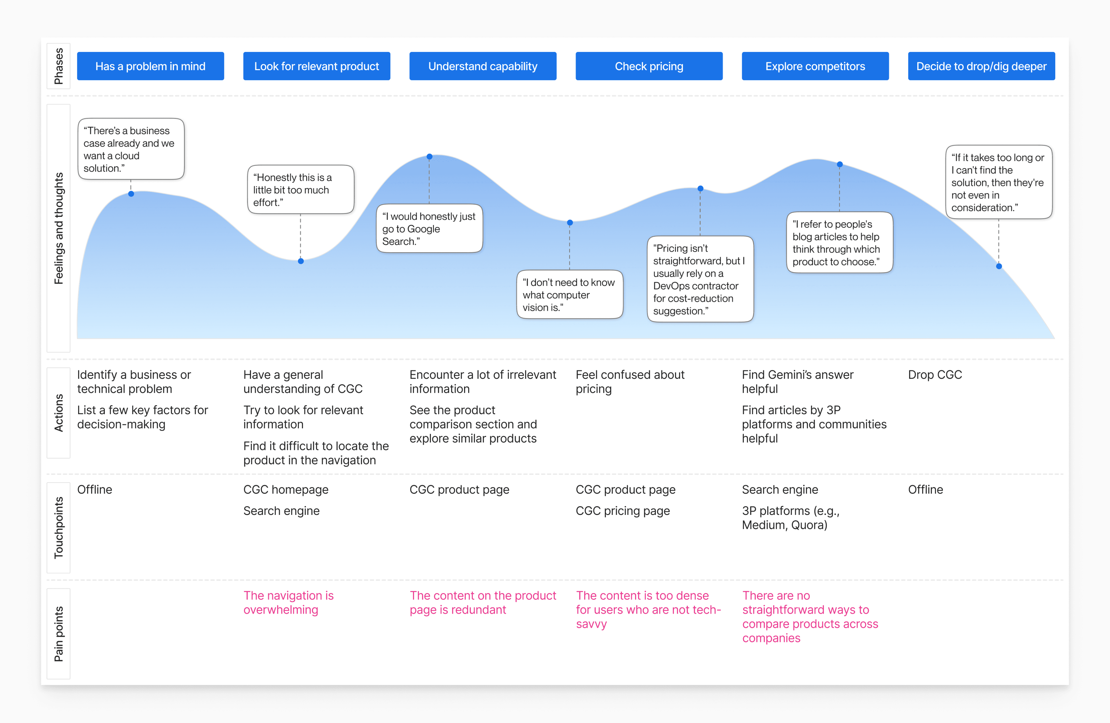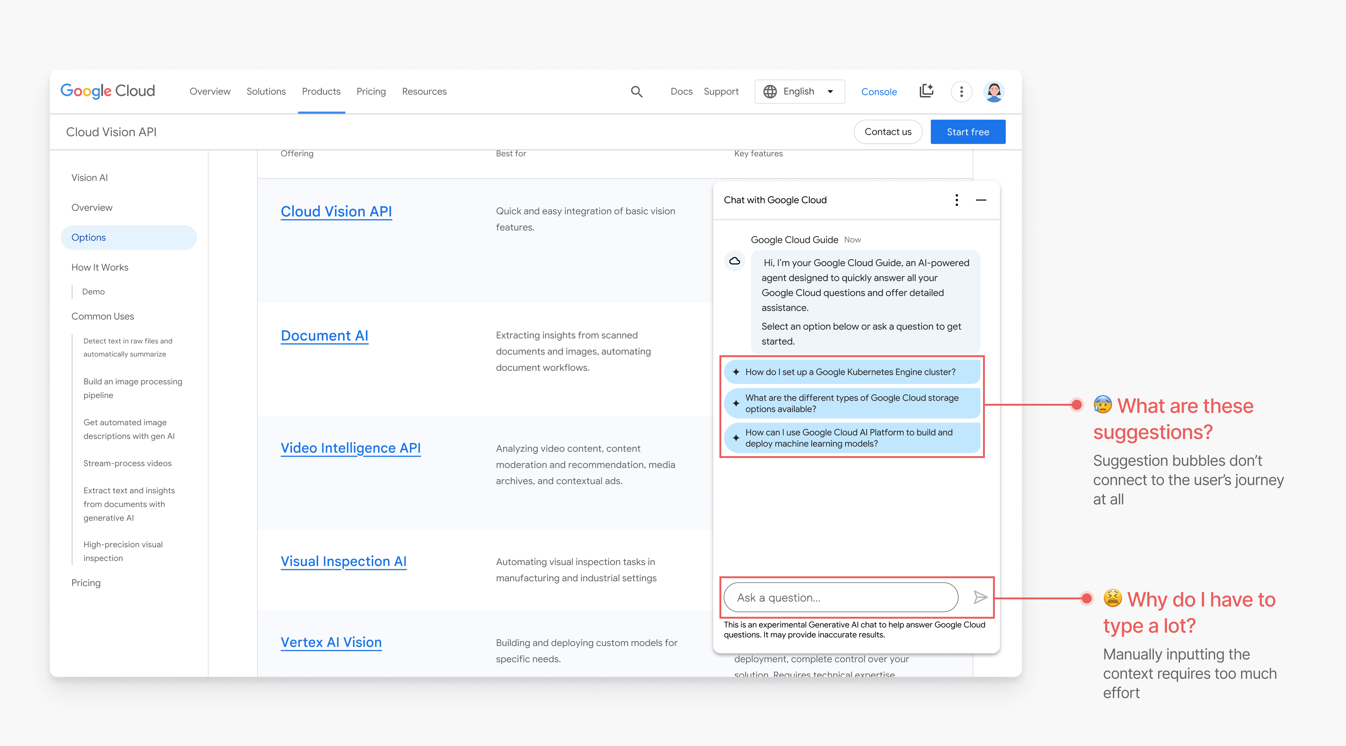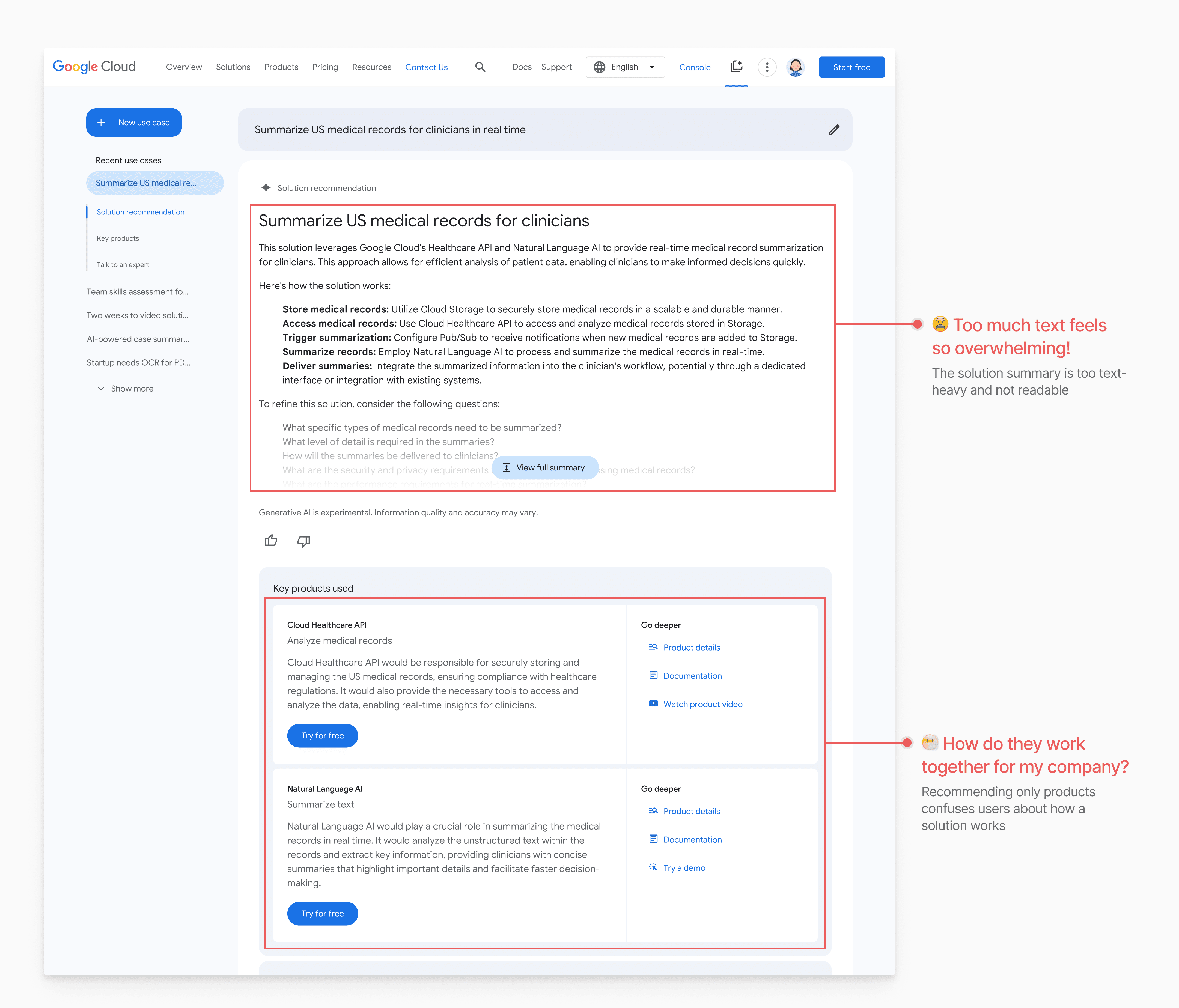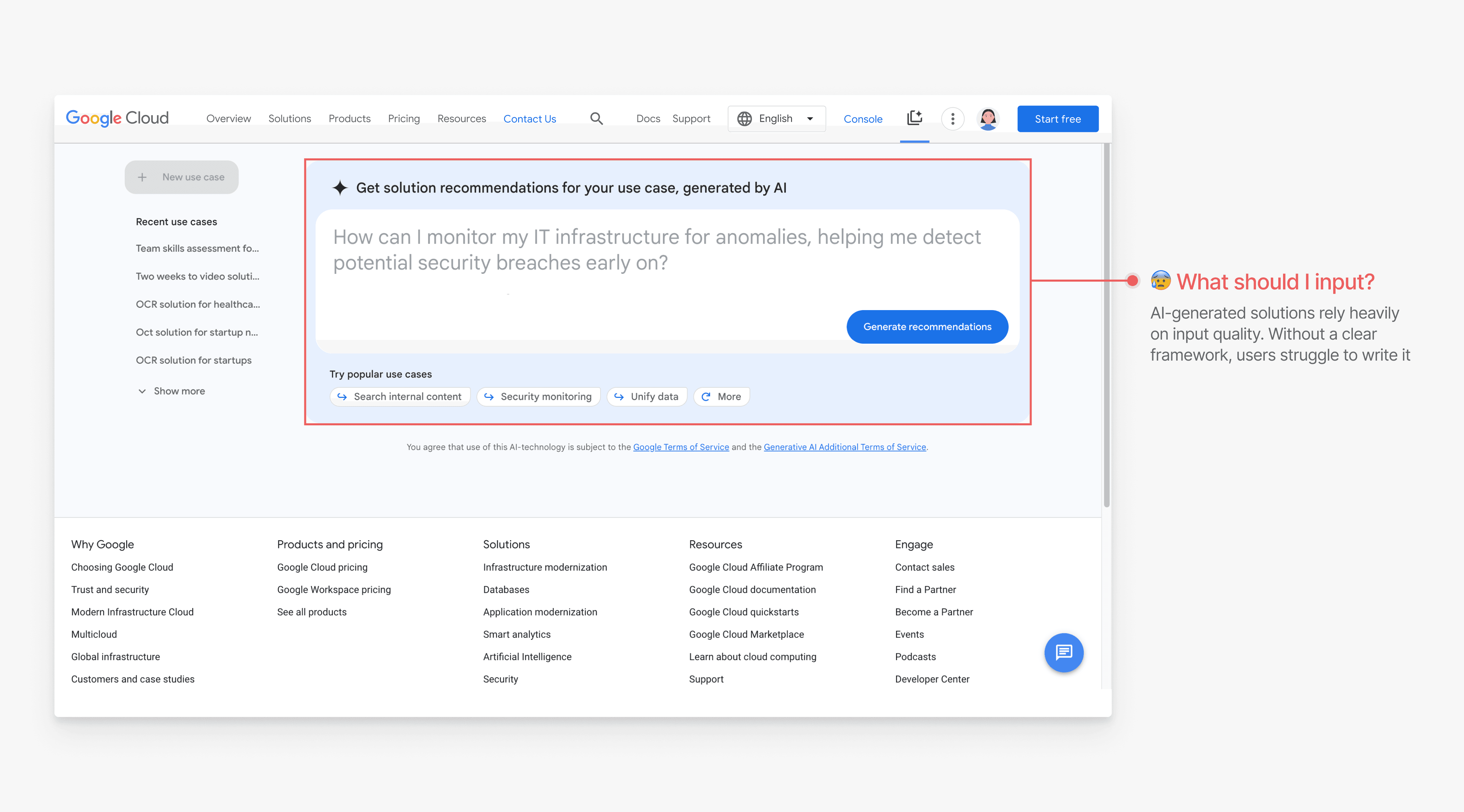 Google Cloud's marketing website, which hosts various products, solutions, and documentation, attracts over 1 million daily visitors, yet users have trouble finding solutions for their use case